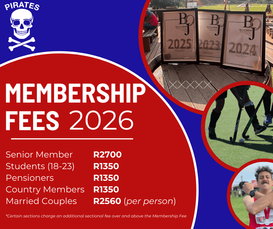 What does it mean be part of Pirates. Not only do you participate in your chosen sport with a group of fellow Pirates that have passion and drive for sport but, before you know it, you’re a Pirate for life. It’s a club rich in history, built on great tales, family vibes and always fun. Pirates give back to the community in countless drives and fundraising initiatives to uplift the lives of those we affect. By becoming a member you don’t only add value to your own life, but to those in the community around you.
